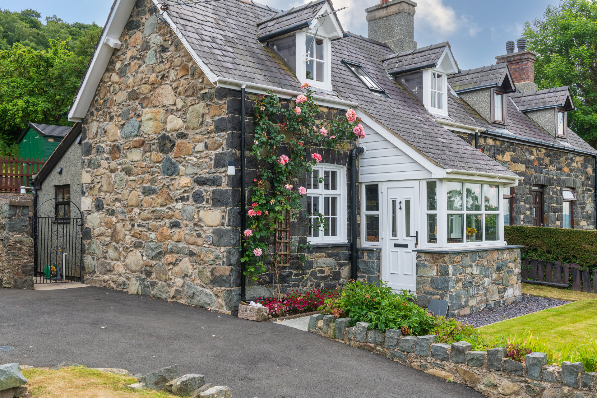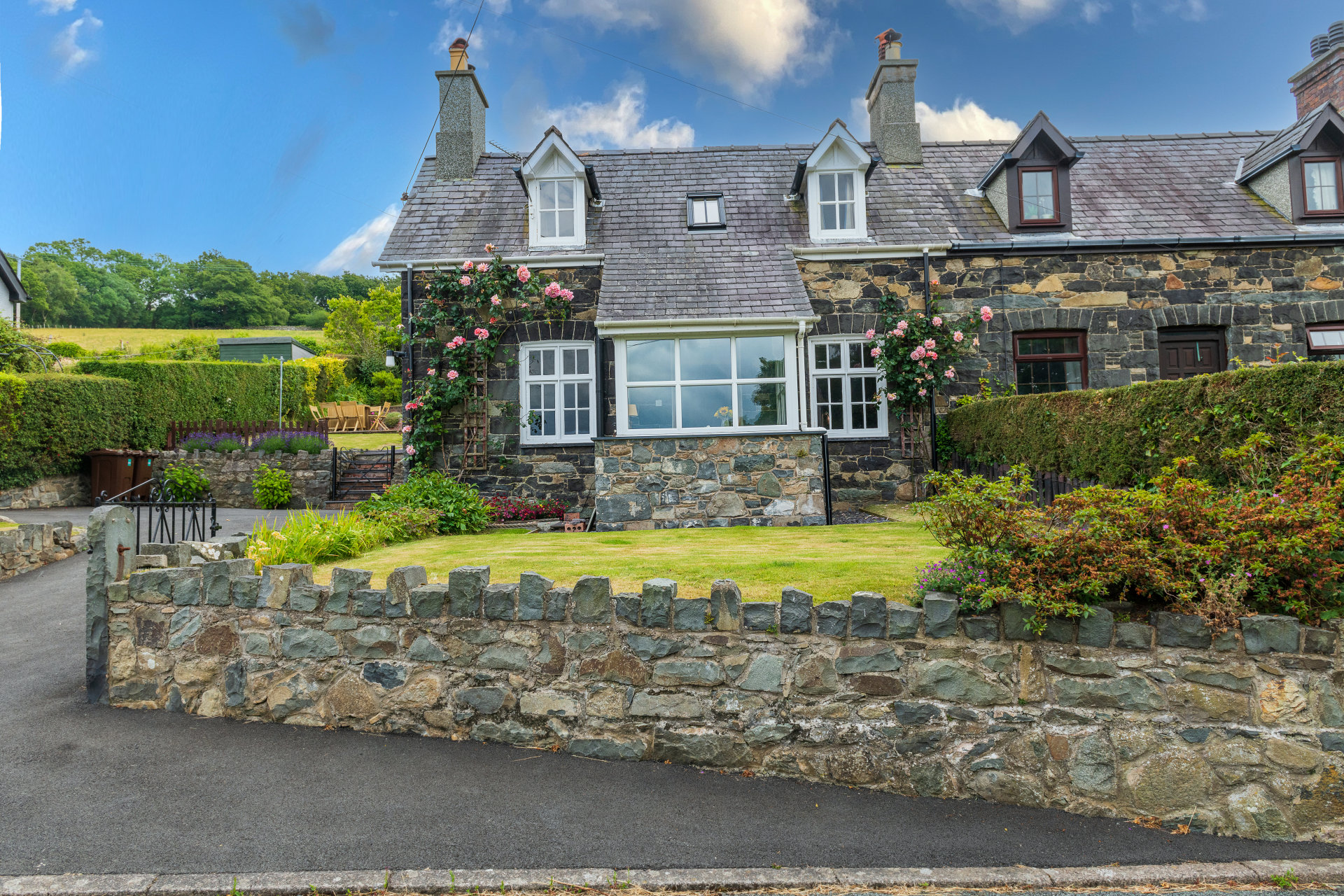 The cottage has an elevated garden which gives incredible panoramic views of the sea and the mountains. A patio area with bbq and garden furniture is perfectly set up to enjoy lots of al fresco eating during the warmer months. There is also a lawn with lots of pretty shrubbery making it feel tranquil.